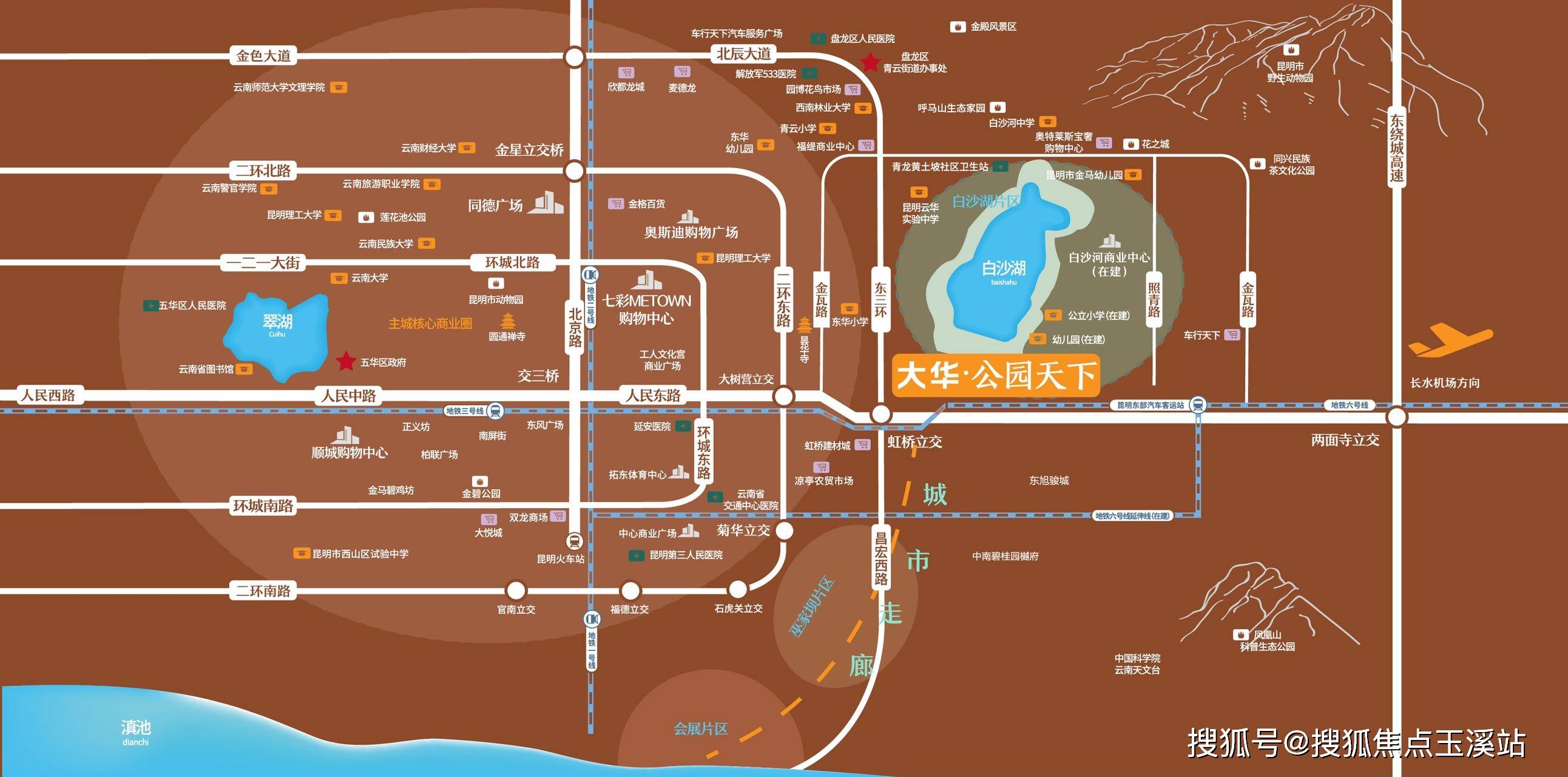 大华·公园天下位于昆明东市区白沙湖畔,占据着昆明东大门的位置。作为昆明十四五规划中城市东进的首位区域,东市区是昆明主城最后可大规模连片开发的区域。项目外接长水机场,内连市中心,区位优势得天独厚。特别是所处的白沙湖片区,被规划为集休闲度假、国际商务、高端居住、生态资源于一体的昆明国际山水休闲城,未来发展潜力巨大。